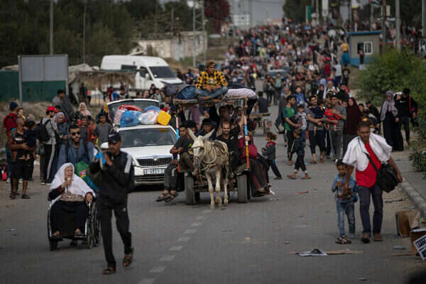 עזתים מתפנים לדרום הרצועה. חמאס מזהיר ומאיים את התושבים משיתופי פעולה עם ישראל | צילום: אי.פי