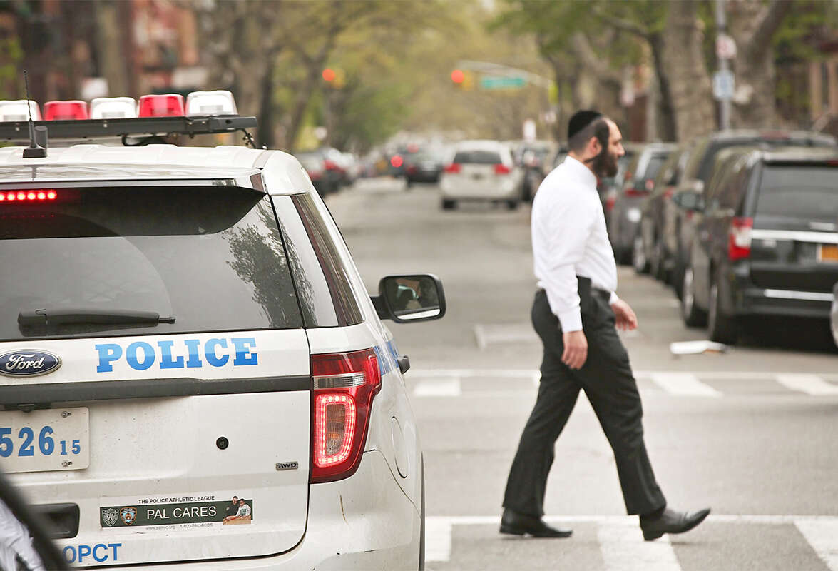 זהות הקורבנות ידועה, וגם זהות התוקפים. יהודי אורתודוקסי לצד סיור משטרתי בשכונת ברוקלין בניו יורק // צילום: GettyImages