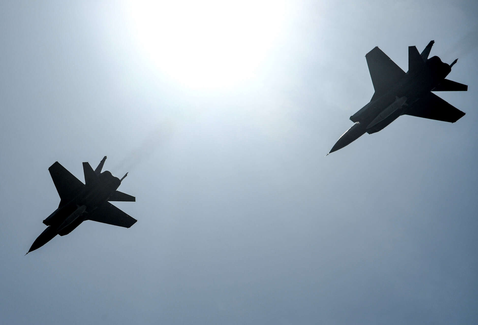 צמד מטוסי מיג 31 רוסיים, המסוגלים לשאת טילי אוויר היפרסוניים, במטס ראווה במוסקבה, מאי 2018 // צילום: Sputnik