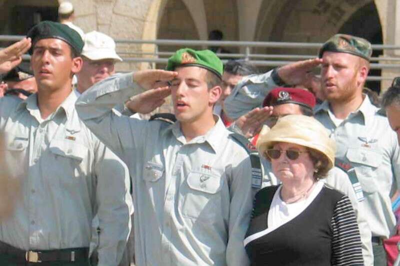אחרונה לגלות, ראשונה לגאולה. רחל שיין ז"ל ואחד מנכדיה, במסדר "עדים במדים" ליד הכותל