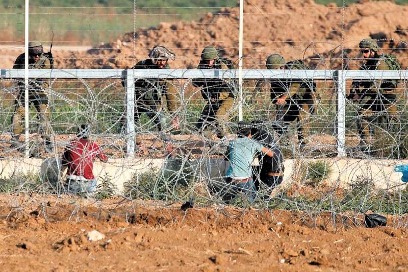 כוחות צה"ל מול פלשתינים ליד הגדר, השבוע // צילום: אי.אף.פי