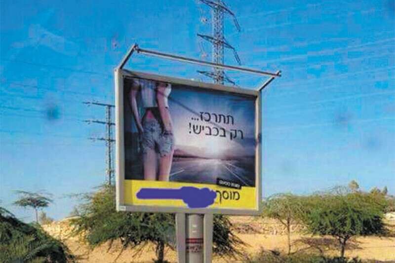 ביציאה הצפונית מבאר שבע עמד שלט חוצות במשך חודשי שמש רבים ועליו נכתב: "תתרכז... רק בכביש!" לכאורה, עצה טובה למדי, אלמלא לצד המילים צולמה נערה במכנסונים קצרים וקרועים, בפוזה שלא השאירה ספק מדוע הנהגים צריכים להתרכז בשלוש הנקודות ולא בדרך שמולם.