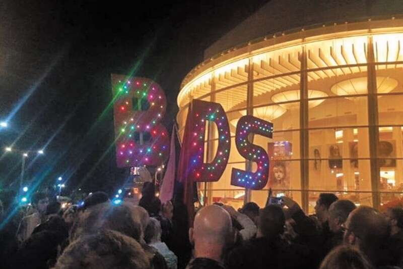 זה לא אקט מקרי, זה מנוע בערה. שלט של BDS בהפגנה בת"א במוצאי השבת האחרונה // צילום: מתוך פייסבוק