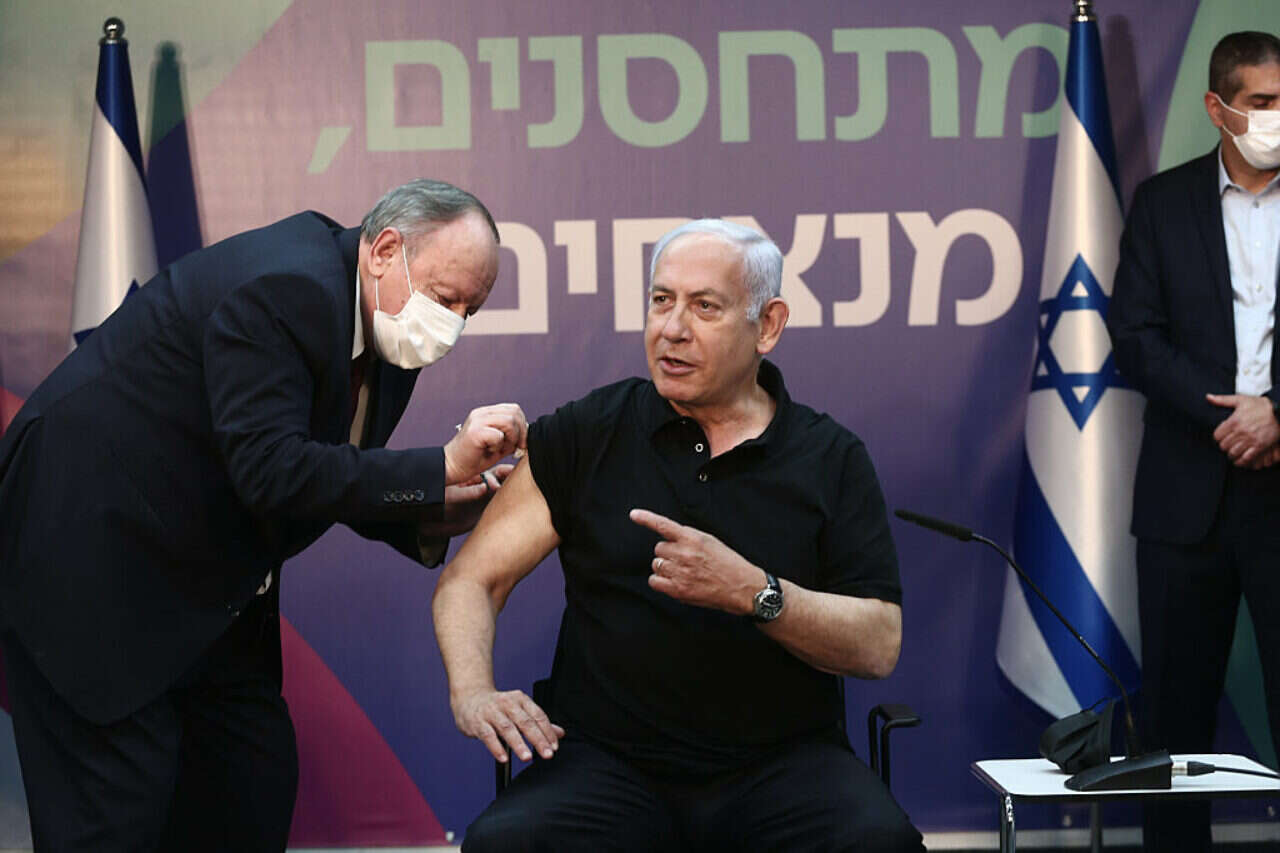 נתניהו בזמן חיסונו נגד קורונה, צילום: צילום: מרים אלסטר/פלאש 90