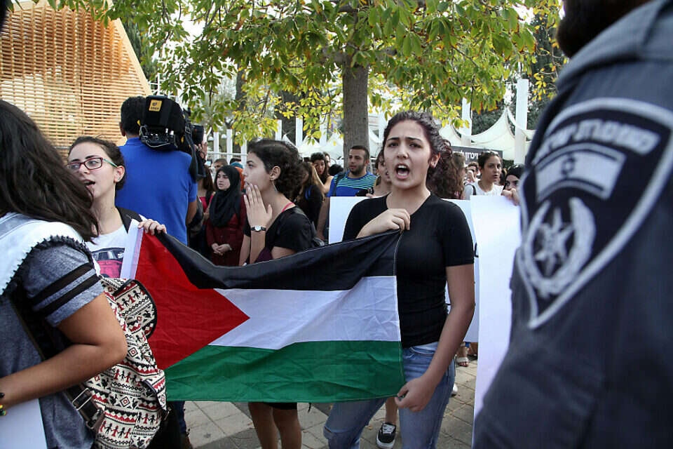 סטודנטיות מניפות את דגל פלשתין באוניברסיטת תל אביב. רק דעה אחת מותרת?, צילום: גדעון מרקוביץ'