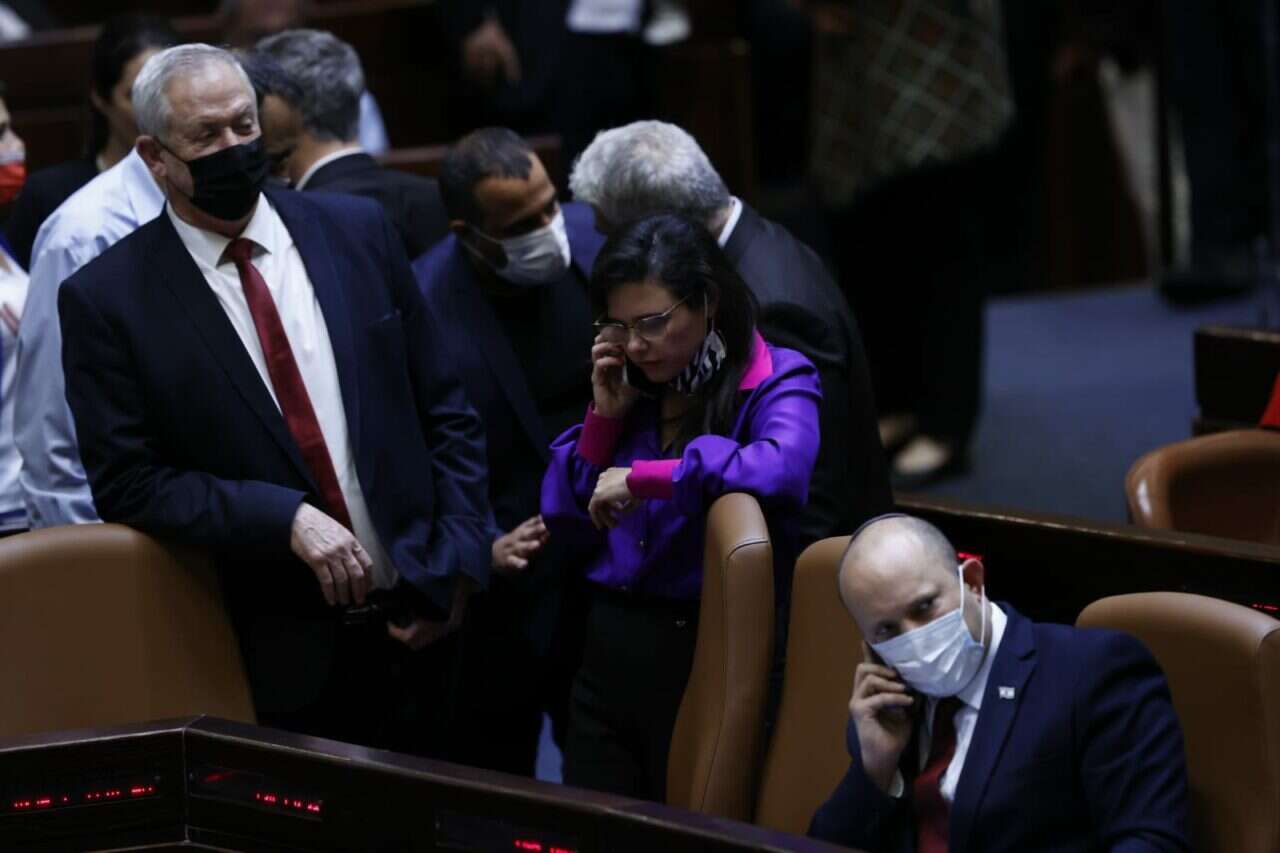 רה"מ בנט והשרים שקד וגנץ, הלילה בכנסת, צילום: יונתן זינדל