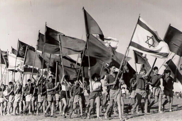 מפגן דגלים בכנס הקיבוץ המאוחד, פסח 1951 | צילום: אביבה שני, בית חרות