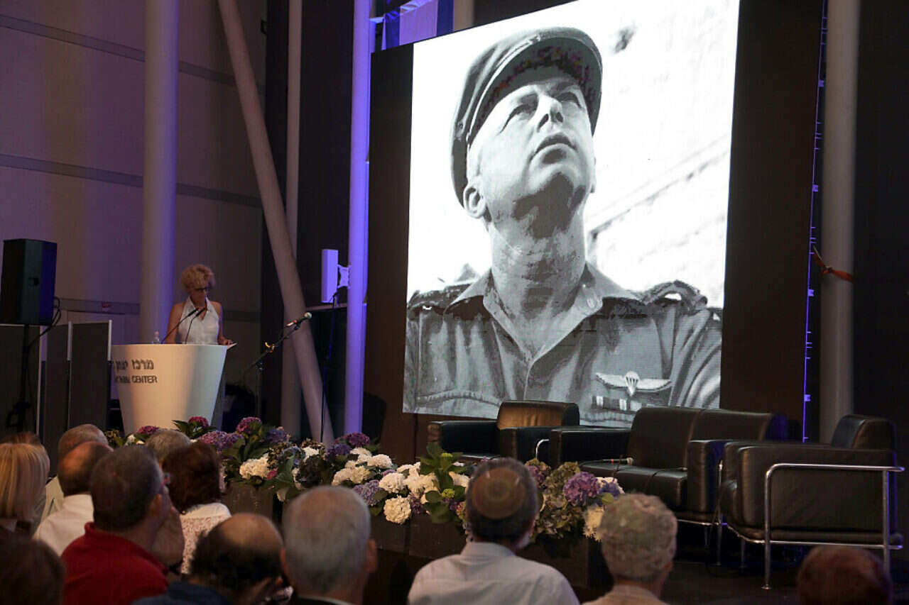"לזכור אותו כפי שהיה באמת". צילומו של רבין כרמטכ"ל מוקרן באירוע במלאת 50 שנה למלחמת ששת הימים | צילום: גדעון מרקוביץ'