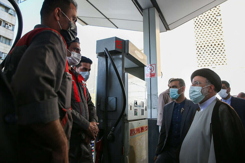 נשיא איראן ראיסי בתחנת דלק בטהרן, לאחר מתקפת הסייבר בשבוע שעבר. "מאזן הרתעה", צילום: אי.פי.אי