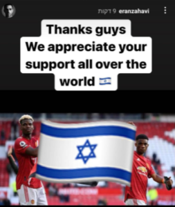 מדובר בפול פוגבה ואמאד דיאלו, שבחרו במשך דקות ארוכות להניף את דגל פלשתין ולתמוך בעם הפלשתיני בעזה, כמובן על רקע העימות המתמשך מול ישראל.
