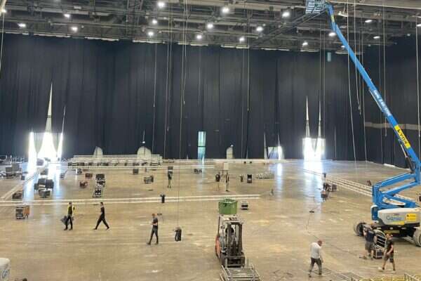 הפועלים עבדו במרץ בימים האחרונים כדי להשלים את בניית היציעים ל-3500 הצופים, וכן את המסך הענק, כאשר ניתן עדיין להכין את משטח התחרות ואזור החימום, כל זה צריך להיות עד מחר בערב מוכן, לקראת תחילת האימונים ביום שלישי.
