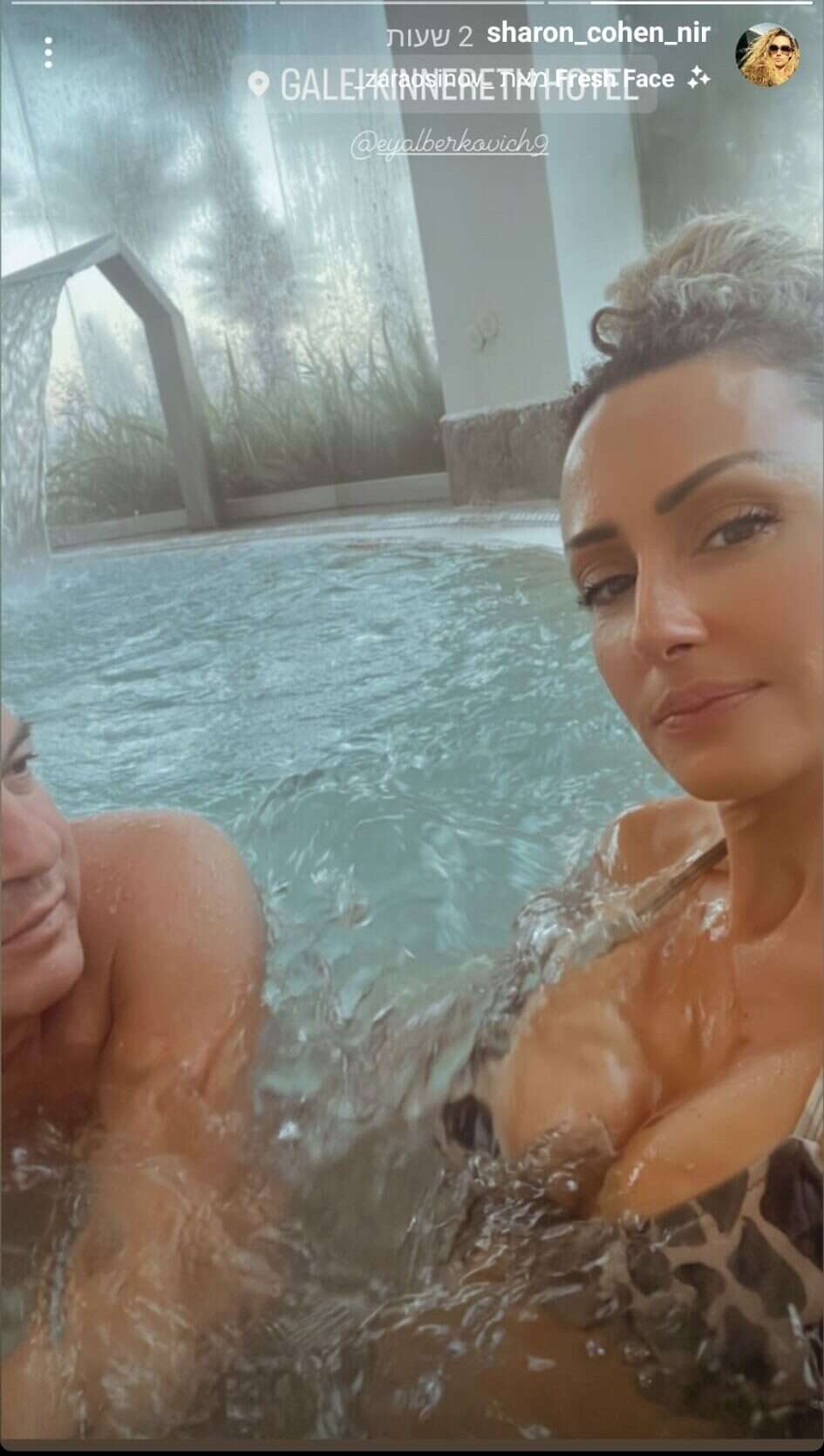 שרון, שמרבה לשתף את עוקביה בחוויותיה ברשתות החברתיות, העלתה לרשת מספר תמונות (כמובן לפני כניסת השבת), בה נראים השניים מבלים בבריכת המלון עם לא מעט יין לבן ופינוקים.