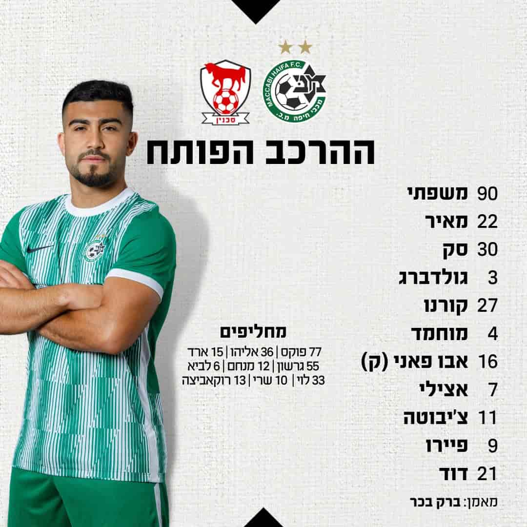 מכבי חיפה ובני סכנין חזרו הערב (שני) לליגה עם הרכבים שהזכירו קצת את גביע הטוטו, בעיקר אצל האורחים. אבל האלופה יכולה וצריכה להסתדר בלי דניאל סונדגרן, נטע לביא ודולב חזיזה הפצועים, גם אם צ'ארון שרי פותח על הספסל.