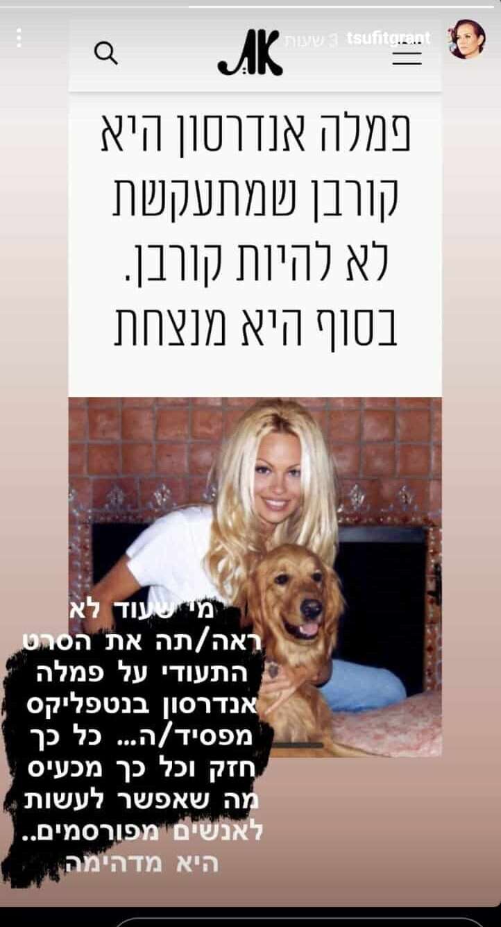 אז מסתבר, שאנדרסון, שנפגעה מכל גבר בחייה ולמרות הכל - התעקשה לא להפוך לקורבן, הצליחה לרגש גם את צופית גרנט, שצפתה בדוקו המדובר ומיהרה להגיב ברשתות.