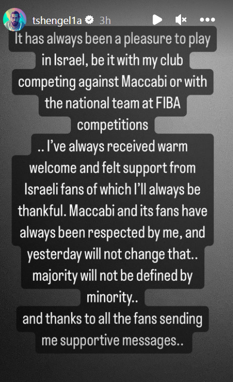 עוד הוסיף שנגליה: "תמיד רחשתי המון כבוד לאוהדי מכבי ת"א, ומה שקרה אתמול לא ישנה את זה. מיעוט לא יגדיר את הרוב. אני בהחלט מודה לכל האוהדים ששלחו לי הודעות תמיכה".