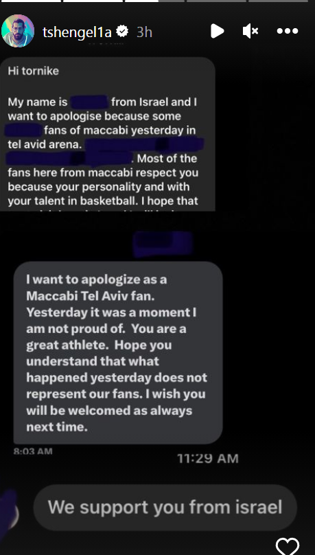 יממה אחרי התקרית הביזארית בהיכל, טוקו שנגליה מגיב לראשונה. כזכור, אתמול במהלך הרבע הרביעי במשחק מול מכבי תל אביב, שחקן וירטוס בולוניה איבד את השלווה והעצבים, כשרצה לזנק ליציע לאחר שספג קללות וצעקות מצד מספר אוהדים. אחרי מספר שניות, הפורוורד נעצר על ידי אנשי האבטחה בהיכל ביד אליהו וחברי הצוות של קבוצתו.