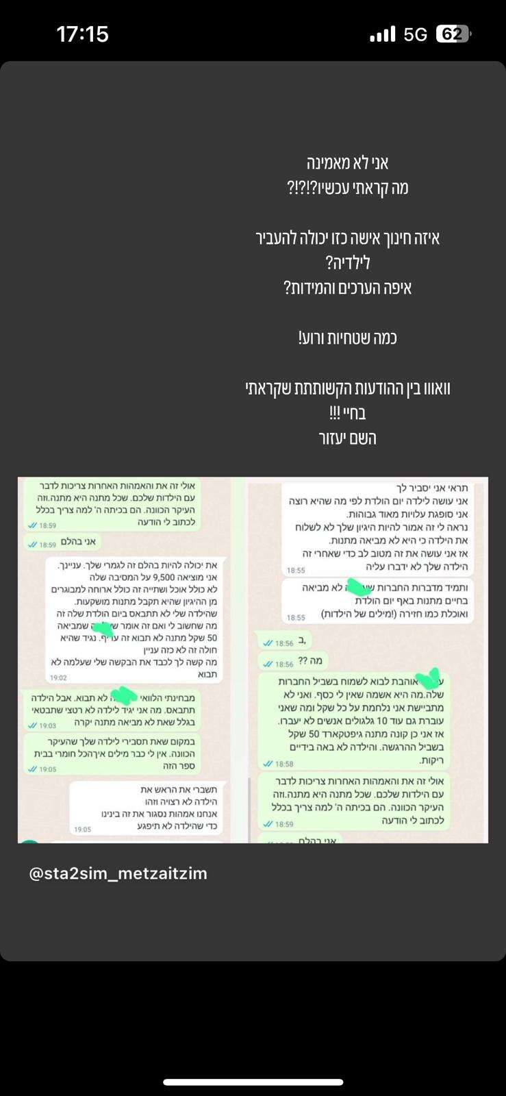 הרשתות סערו הבוקר בעקבות התכתבות הווטסאפ בין שתי אימהות כשאחת הסבירה לשנייה שבתה לא רצויה במסיבת יום ההולדת שהיא מארגנת לילדה שלה כיוון שהיא לא מביאה מתנות יקרות.