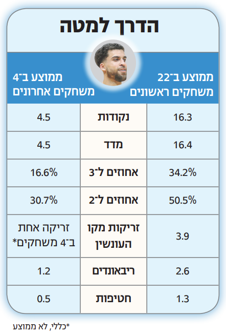 כאן אנו מגיעים לנקודה שיכולה לשנות את הכל, גם מבחינה מקצועית. הכדורסל הטוב ביותר של מכבי ת"א בעידן ווילבקין היה בתחילת העונה שעברה, כשנייט וולטרס שיחק לצידו בחמישייה עד שנפצע. העונה מספר 1 בצהוב סובל מאוד מהיעדר רכז דומיננטי.