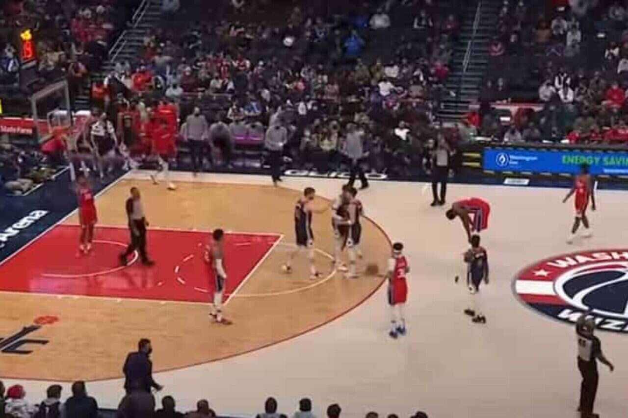 הכל התחיל כארבע דקות וחצי לסיום המשחק, כאשר וושינגטון יצאה להתקפה בה ברטאנס ציפה לקבל חסימה מאבדיה כדי שיוכל להישאר חופשי על קשת השלוש. אבדיה דווקא ניסה לקבל את הכדור ב'פוסט' במקום לחסום, מעשה שהכעיס במיוחד את הלטבי. בהמשך אומנם אבדיה יצא לכיוון קשת השלוש כדי לחסום לברטאנס, אך החסימה לא הייתה אפקטיבית והלטבי נאלץ להשליך שלשה נוספת החוצה.
