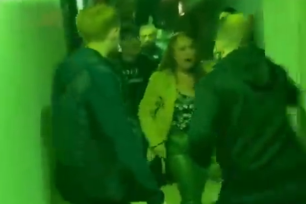כעבור 15 שניות, מי שלא נשארה חייבת היא אימו של פודן, שיצאה מהחדר כדי לדחוף את אחד מהבחורים שניצבו מחוץ לאותו חדר. האחרון גם לא נשאר חייב, והשיב לה בצורת אגרוף ששלח לפניה, ומשם כבר התפתחה תגרה אלימה, כששני מאבטחים מנסים לעצור את הבלגן. חשוב לציין כי גם קשר מנצ'סטר סיטי תועד, כשהוא מנסה לתקוף את אנשי החבורה, שלא הפסיקו לקלל.