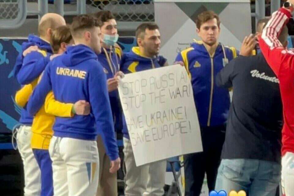 La squadra maschile di fioretto dell'Ucraina lascia le pedane del Cairo, si ritira dagli ottavi di finale di Coppa del Mondo (si rifiuta di affrontare la Russia) ed espone il cartello: