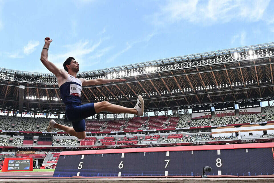 דרמה גדולה באצטדיון האתלטיקה בטוקיו: חואן מיגל אצ'ברייה מקובה הוליך את התחרות החל מהקפיצה השלישית עם 8.41 מטרים, אך בסבב הקפיצות האחרון - מיליטיאדיס טנטוגלו מיוון קפץ למרחק דומה, עבר מהמקום הרביעי לראשון וזכה - בגלל שבחישוב כלל הקפיצות הוא היה טוב יותר.