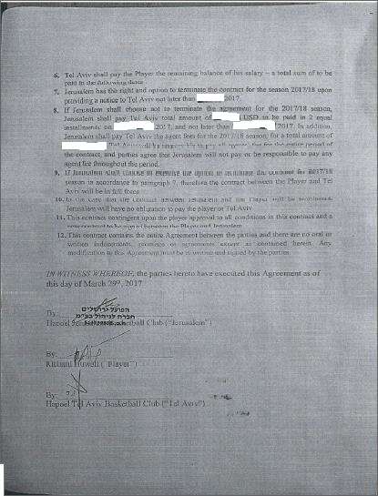 בחוזה אין התייחסות ישירה לכך, אך בין הצדדים סוכם עוד כי ירושלים תשלם 20 אלף דולרים נוספים במידה ותחליט לקיים את האופציה על השחקן בעונה הבאה. כך שסך הביי אאוט שהפועל ת"א היתה אמורה לקבל הוא 80 אלף דולרים, והיא חוסכת גם את 40 אלף הדולרים שהיתה צריכה לשלם להאוול עד סוף העונה כשכר.
