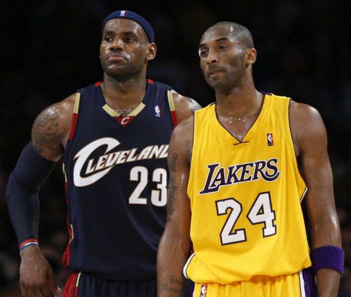 קובי בראיינט לצד לברון ג'יימס. שני כוכבים שהגיעו לאן.בי.אי ישר מהתיכון // צילום: אי.פי