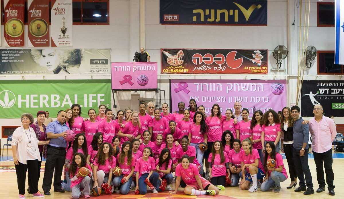 הצבע הוורוד שלט הערב (ב') באולם אורנים ברמה"ש, שם נפתחה עונת 162015 בליגת העל לנשים. "המשחק הוורוד" הפגיש את הקבוצה המקומית לבנות הרצליה במסגרת חודש המודעות לסרטן השד. השחקניות לבשו חולצות ורודות, הבלונים הוורודים שלטו ביציעים וגם השלטים שהונפו ברחבי האולם היו באותו צבע.