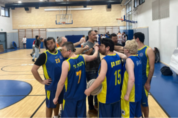 על המגרש ברמת גן עלו שחקנים מעושים ליגה – ליגת הכדורסל של עמותת אנוש ומקבוצת הכדורסל של אקים רמת גן • המשחק התקיים במעמד ראש עיריית ר"ג, מר כרמל שאמה הכהן