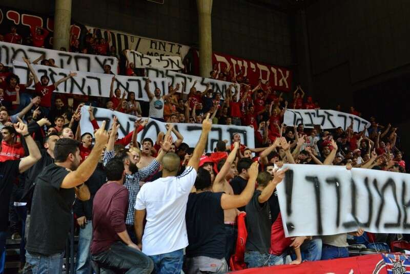 הקהל האדום במחאה מול משקיפי האיגוד // ציולום: אודי ציטאיט