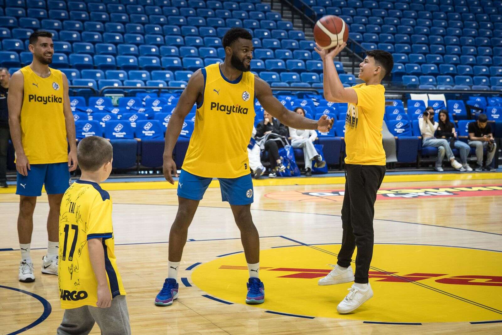 “מכבי תל אביב זה קודם כל משפחה, זה מועדון שמחבק את אנשיו ואת המדינה”, הוסיף הסנטר רומן סורקין, “זה כבוד בשבילנו לארח אותם פה, לעשות את המעט שאנחנו יכולים, זו ברכה. אנחנו מודים להם שהם באו לפה, ושמחים שאולי איכשהו קצת עזרנו. כיף לשחק איתם ולראות אותם מחייכים קצת”.
