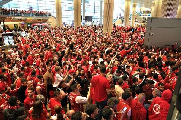 הפועל תל אביב זכתה אמש (שישי) ביורוקאפ והבוקר התקבלה על ידי אלפי אוהדים בנמל תעופה בן גוריון כדי לחגוג את הרגע ההיסטורי שלה. אוהדים אדומים החלו להגיע כבר מהשעה 9:00 לנמל התעופה וכשהשחקנים שנחתו קיבלו אהבה ענקית, אך המשטרה במקום לא איפשר להם לצאת החוצה והם יצאו מיציאות צדדיות, אליהן האוהדים לא הורשו להגיע.