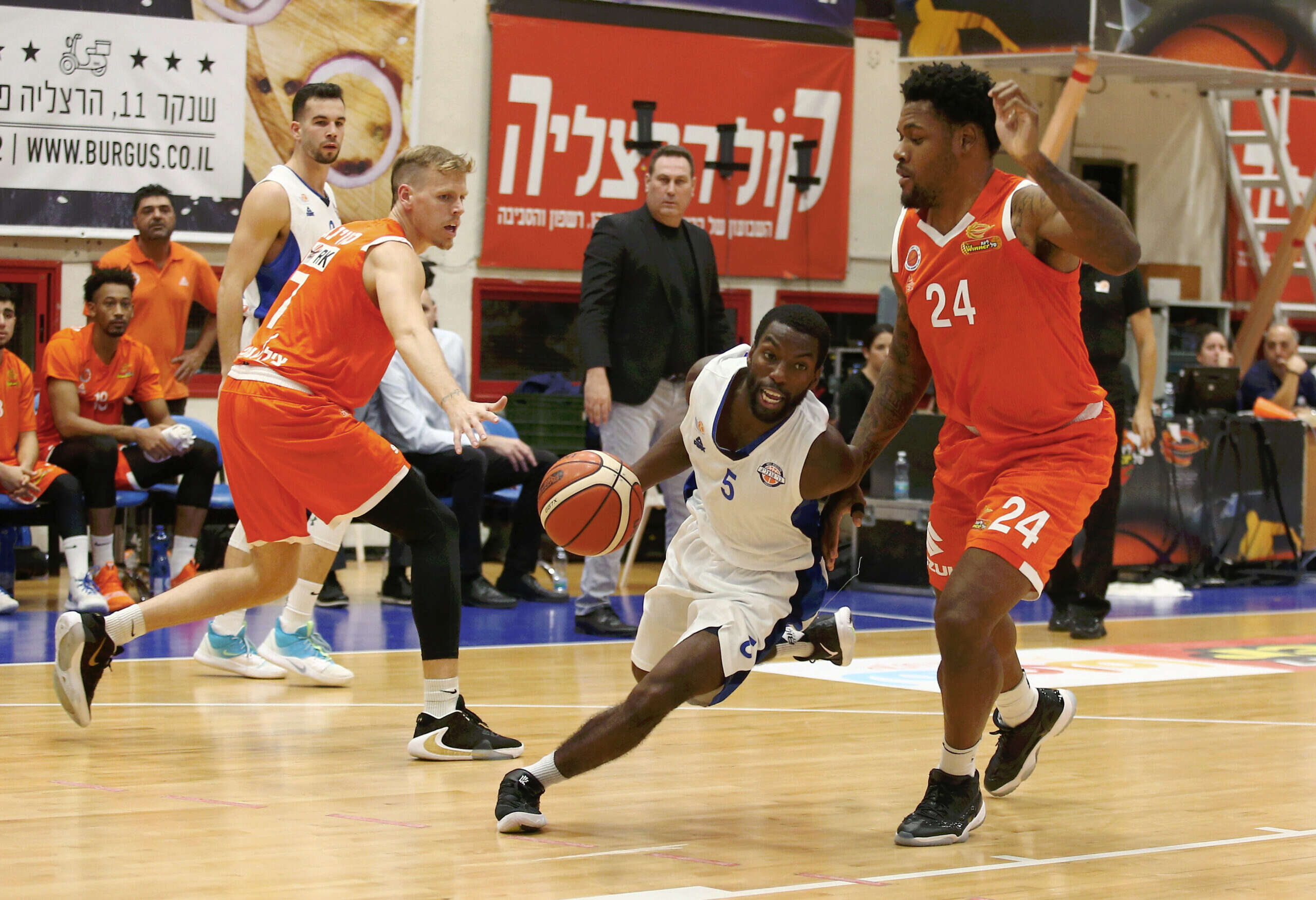 מאבק צמוד בין מכבי ראשל"צ לבני הרצליה // צילום: אלן שיבר // מאבק צמוד בין מכבי ראשל"צ לבני הרצליה