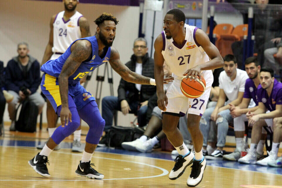 קיין עוצר את קרופורד. שש חטיפות למספר 7 של מכבי // צילום: אנצ'ו גוש/ג'יני // קיין עוצר את קרופורד. שש חטיפות למספר 7 של מכבי
