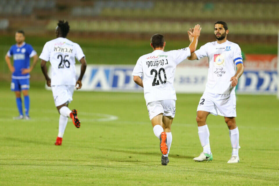 דקה 13: שער! גבי קניקובסקי השתלט יפה על הכדור בתוך הרחבה ומצא את בן אז'ובל, שדחק פנימה - 0:1 לעכו.
