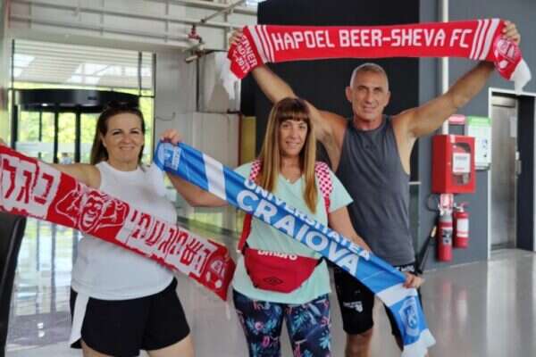 אוהדי הפועל באר שבע עושים את דרכם לעבר האצטדיון בו ייערך הערב (חמישי) משחק הכדורגל מול הקבוצה המקומית קראיובה, בעיר דרובטה-טורנו סברין המרוחקת כשעתיים נסיעה מהעיר קראיובה. מאוחר יותר, עזבו גם השחקנים את בית המלון בעיר, ויצאו אל עבר האצטדיון.