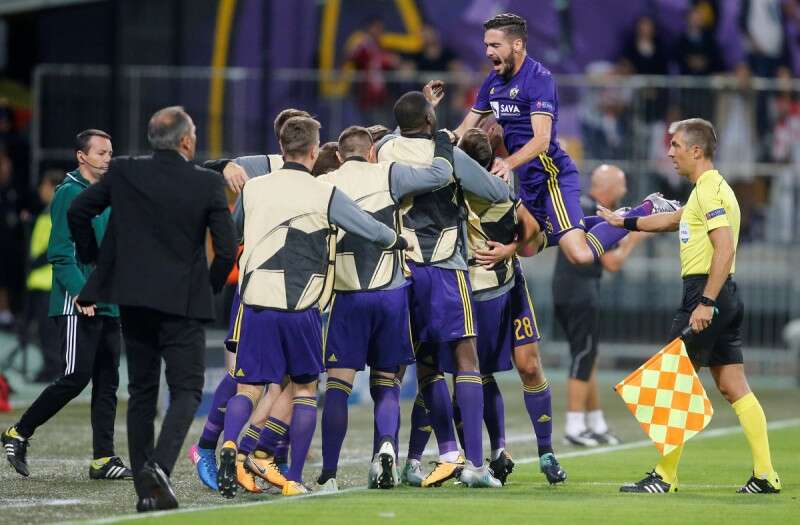 שחקני מאריבור חוגגים:. "קבוצה מצוינת שאם היתה בארץ, היתה רצה לאליפות" // צילום: רויטרס