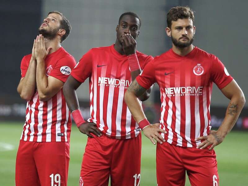 שחקני הפועל ת"א בסיום משחק הירידה. איפה הם יהיו בעונה הבאה? // צילום: אלן שיבר