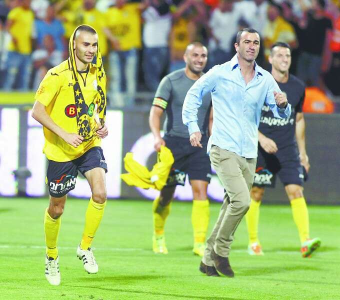 שריקי חוגג את העלייה לגמר גביע המדינה בעונה שעברה. נתניה היתה קרובה לתואר // צילום: אלן שיבר