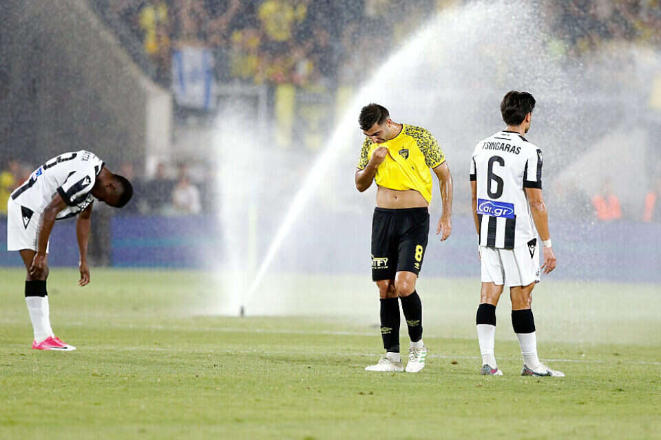במהלך המחצית השנייה, הממטרות על כר הדשא הופעלו במפתיע - פעמיים, וגרמו לעצירת המשחק על ידי השופט. המשחק חודש אך המבוכה כבר נגרמה.