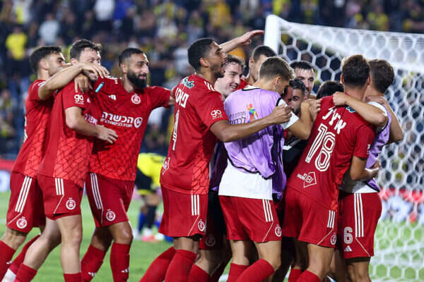 דקה 57: שער! הפועל תל אביב כבר ב-0:3! אצטדיון טדי בהלם. הישאם לאיוס מוסיף שער לבישול שלו, האדומים מפרקים את הצהובים-שחורים.