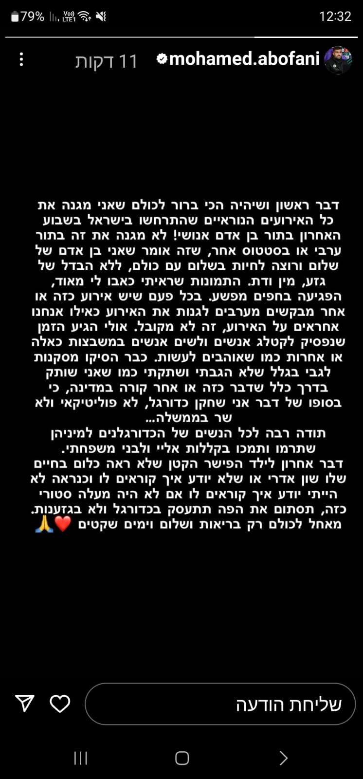מוחמד אבו פאני מצא את עצמו תחת מתקפה וטענות שהוא נעלם במקום להגיב על מתקפת הטרור הברברית של החמאס בשבת האחרונה. בפוסט שפרסם הבוקר (שישי), הוא תובע את כבודו בצורה חדה.