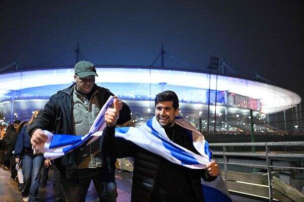אחד מהרגעים העוצמתיים בביקור של נבחרת ישראל בפריז התרחש דווקא מחוץ למגרש. מאות אוהדים יהודים וישראלים שהגיעו באוטובוסים מאורגנים אשר לוו על ידי המשטרה נתקעו בבדיקות האבטחה הקפדניות ועמדו בחוץ בזמן שבתוך האצטדיון החל ההמנון הישראלי להתנגן בקול רם. תוך רגע, קבוצת האנשים הדחוסה החלה לשיר בהתרגשות את 'התקווה' ואנשים רבים הניפו את דגלי ישראל.