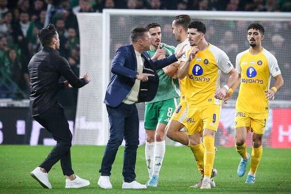 מאמן מכבי חיפה, ברק בכר, נכנס למגרש והתעמת עם דור תורג'מן. המהומה היתה גדולה ויגאל פריד הוריד את הקבוצות לחדרי ההלבשה. האווירה היתה כל כך חמה, עד שמפקד השיטור נתן הוראה לעשרות שוטרי יס"מ להקים חומה אנושית מול היציע הצפוני כדי למנוע מאוהדים לרדת לכר הדשא. אחד האוהדים של מכבי חיפה, שיושב בכלל ביציע המערבי, ניסה להיכנס לכר הדשא ונעצר לפני שהגיע לתורג'מן. השוטרים אמרו לאנשי מכבי חיפה ומכבי תל אביב כי "מספיק אוהד אחד חמום מוח שבאווירה שנוצרה יעשה מעשה שייגמר רע מאוד".