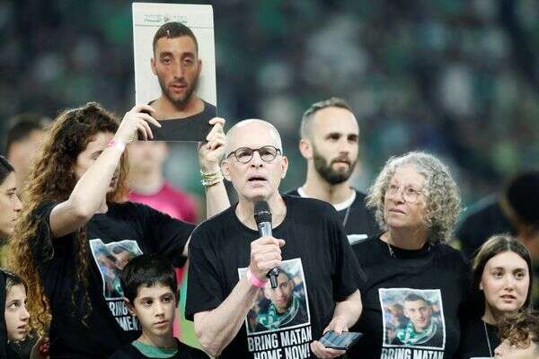 "ברגעים הכי קשים בשבי, והיו הרבה כאלה, מה שחיזק את מתן הייתה האהבה העצומה למועדון ואליכם. אתם מחזקים את מתן והוא יודע את זה, תמשיכו ותילחמו עד שמתן וכל החטופים יחזרו. מה שחיזק אותו היו האנרגיות המיוחדות שאני מרגיש כאן עכשיו. תדעו שזה משחק הכדורגל הראשון שאני נמצא בו בחיי ואני מתרגש מאוד, במיוחד כשאני חושב על מתן".