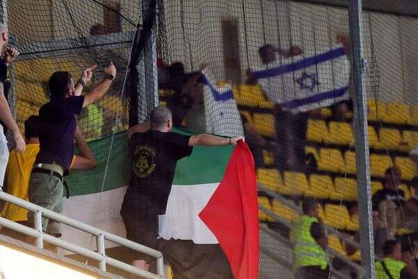 עוד לפני המשחק נרשם אירוע מכוער, כאשר מאבטח לקח לאוהד הקבוצה חולצה ועליה כיתוב לשחרורו של איתן הורן משבי החמאס. הנימוק היה כי מדובר במסר פוליטי, אלא שבאצטדיון נתלו עשרות דגלים פלשתיניים במהלך המשחק ובכך המקומיים לא ראו פסול.