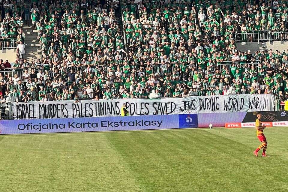 נשיא מכבי חיפה, יעקב שחר, כבר התנצל על השלט בו נכתב על ידי אוהדי קבוצתו "רוצחים מאז 1939", שהצג במשחק הגומלין בשבוע שעבר, וכוון למעשי הפולנים בתקופת השואה. ניסיונו להרגיע את הרוחות כשל, כפי שהתגלה אתמול במהלך משחק ליגה בפולנית בו אירחה יאגלוניה ביאליסטוק את ראדומיק ראדום.