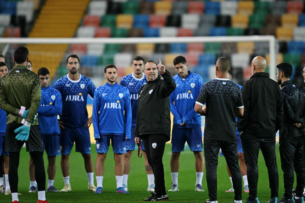 רן בן שמעון ושחקני נבחרת ישראל. צילום: AFP