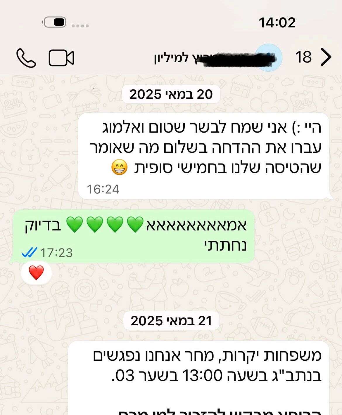 "הרגע שבו רצת אליי, עמדתי מולך וראיתי את הפנים שלך מופתעות – ואני פשוט נשברתי מהתרגשות. כל הגעגוע, כל הדאגה, כל המחשבות – התנקזו לשנייה אחת של חיבוק שלא רציתי שייגמר. נשמה שלי, ארגנת לי מתנת יום הולדת הכי מטורפת שיכולתי לחלום".